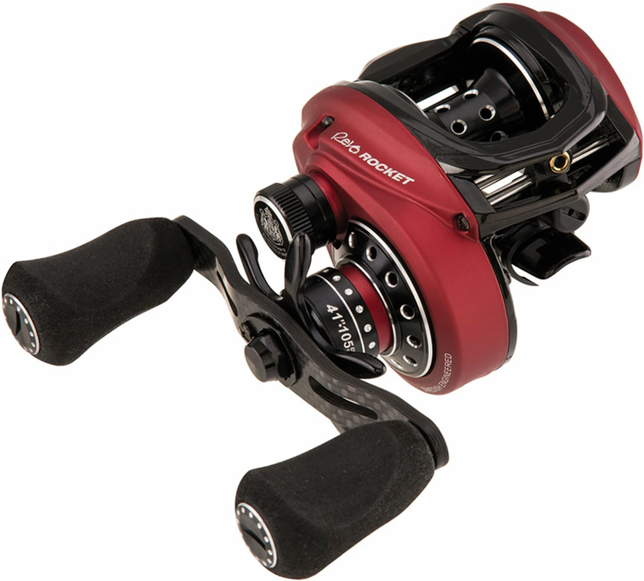 The Abu Garcia Revo Rocket Low-Profile Baitcasting Reels pack a punch of Speed, Strength, and Power. This 10.1:1 gear ratio and 41 IPT and Power Stack Carbon Matrix Drag System make this reel perfect for fast techniques and heavy cover.