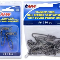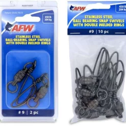 American Fishing Wire Stainless Steel Ball Bearing Snap Swivels are engineered to survive the fiercest one-on-one battles. The patented bullet shape provides fluid rotation and decreased water resistance. The unique gun metal black finish minimizes reflections and cloaks the tackle.