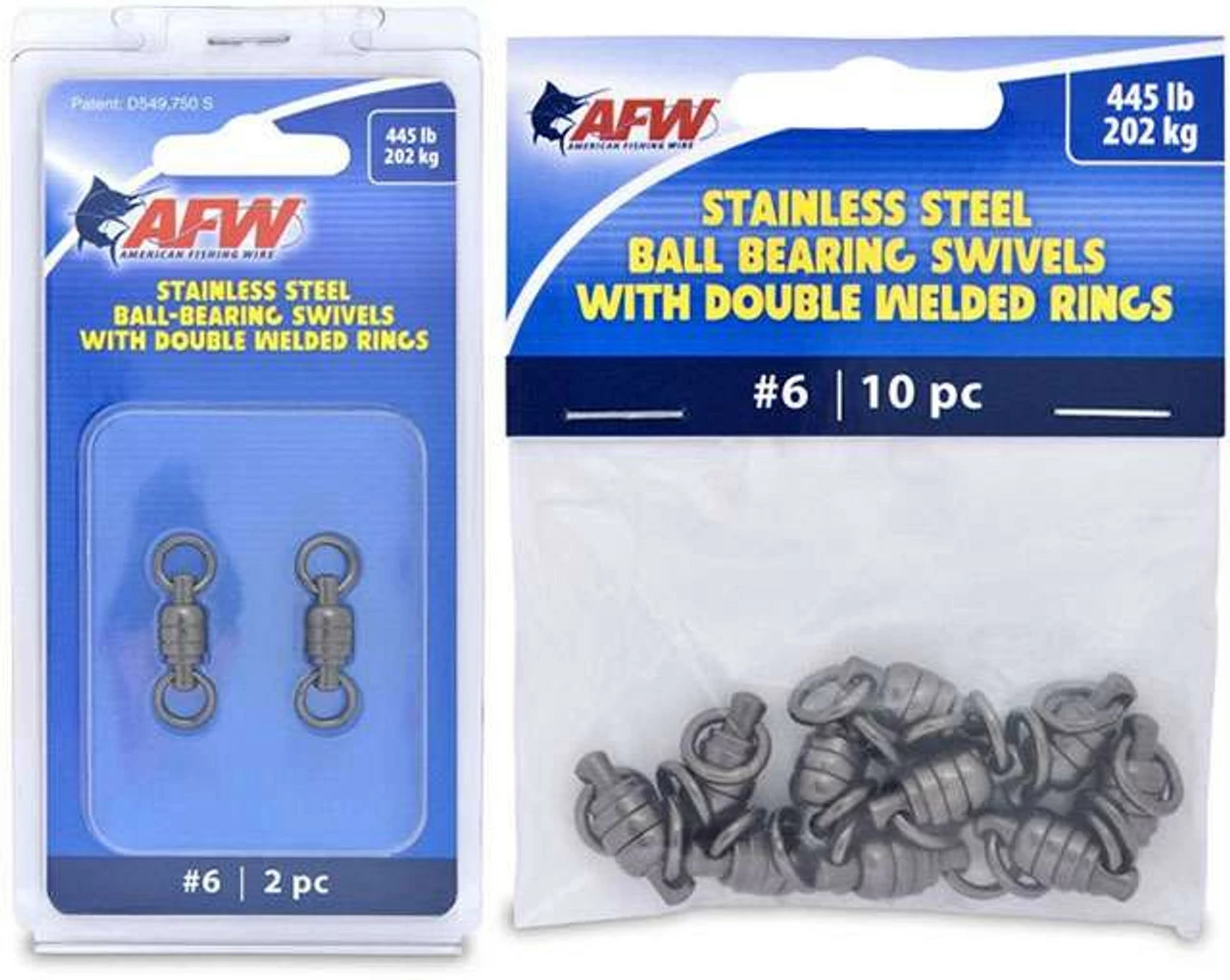 American Fishing Wire Stainless Steel Ball Bearing Swivels are engineered to survive the fiercest one-on-one battles. The patented bullet shape provides fluid rotation and decreased water resistance. The unique gun metal black finish minimizes reflections and cloaks the tackle.