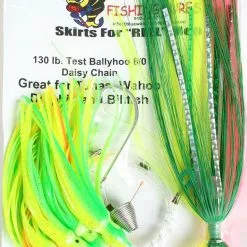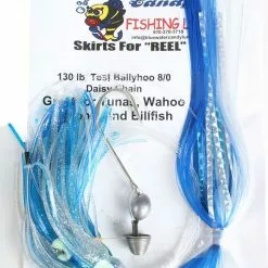 The Superstar Rig is Blue Water Candy’s bestselling daisy chain. It features five 4 1/4″ octopus skirts on 130# mono with a 1 oz. witch chaser. Rigged with an 8/0 ballyhoo rig. Great for hooking into large Mahi, Tuna, & Billfish species.