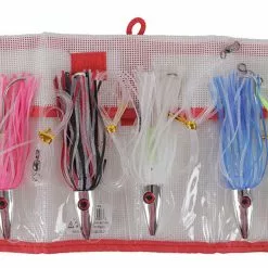 The Boone Tuna Slayer Kit will help take your offshore tuna trolling spread to the next level. Featuring 6 pre rigged Tuna Slayer lures in all of the hottest colors including Black/Red, Blue, Green/Yellow, Purple, Pink, and Pearl White and rigged with 6 feet of 130lb monofilament leader material, a 7/0 Mustad stainless steel hook, and a convenient lure pack to neatly organize your new tuna lures. Each Tuna Slayer possesses a highly polished head and a premium vinyl skirt that will hold up to vicious tuna strikes on the troll, trip after trip. Perfect to pull in any position of your spread, from off of your riggers to your flat line positions, these true tracking trolling lures give off an attractive and highly visible bubble trail that draws in all species of tuna and others such as mahi mahi and even small billfish from the depths. Don?t get caught undergunned when the tuna bite gets hot, be sure to pick up the pre rigged Tuna Slayer Kit from Boone and slay the tuna on your next offshore trip.