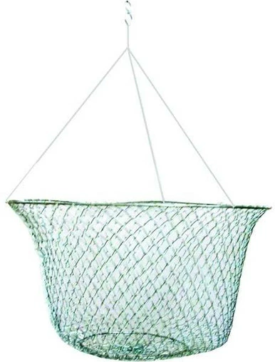 The Eagle Claw 10161-009 Two-Ring Wire Mesh Crab Net features corrosion-resistant aluminum rings. Secure your bait to the inner ring and lower the net to the water for easy and reliable crab catching.