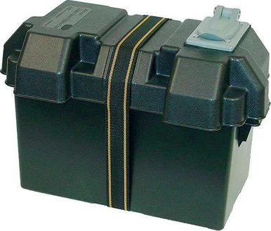 The Elec-Tra-Mate 615-BP 15 Amp XL Big Battery Pack for Models up to 6/0 includes pre-wired Extra Large Battery Case with Handle, Hubbell Marine 15 Amp Double Receptacle, and Weatherproof Cover.