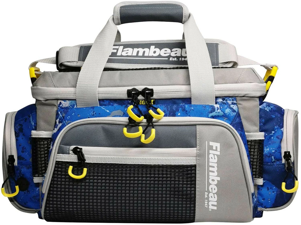 The Evolution Outdoor 5007 Flambeau Pro-Angler Tackle Bags feature a big mouth main compartment opening. These bags hold up to five 5007 Flambeau Utility Boxes with Zerust Dividers. Includes 3.