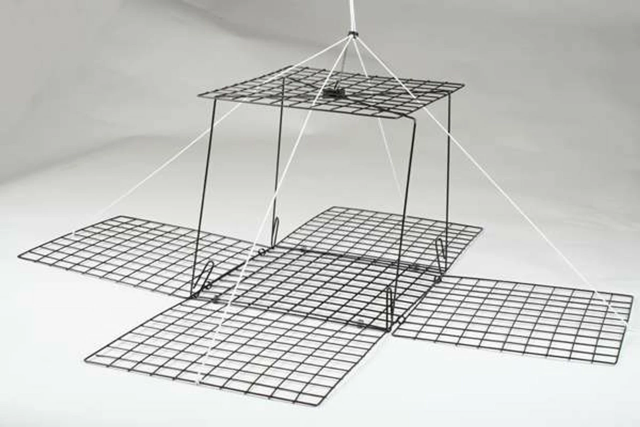 A durable trap that won’t bend or get caught in the abyss. Very well crafted will strong line so you won’t hear that dreaded “snap” meaning you have to replace the trap. Available in a box shape to bring home a tasty bushel for dining. Two side entry design. Comes completely assembled and ready to use. Collapses flat for easy storage and transporting.