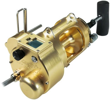 The Hooker Electric Shimano Tiagra 50WLRSA Electric Reels offer all the amazing features of Hooker Electric’s larger 80 and 130 models, in a more compact design, keeping the motor, gears, and internal electrical parts found in the larger reels. The handle is retained, allowing for a full manual fight in low gear, with other features including full variable speed control and a wireless 2-speed remote (Button (A) for half speed and button (B) for full speed). The reel is capable of retrieving 500 feet per minute at full speed with an estimated 50 lbs. of drag.