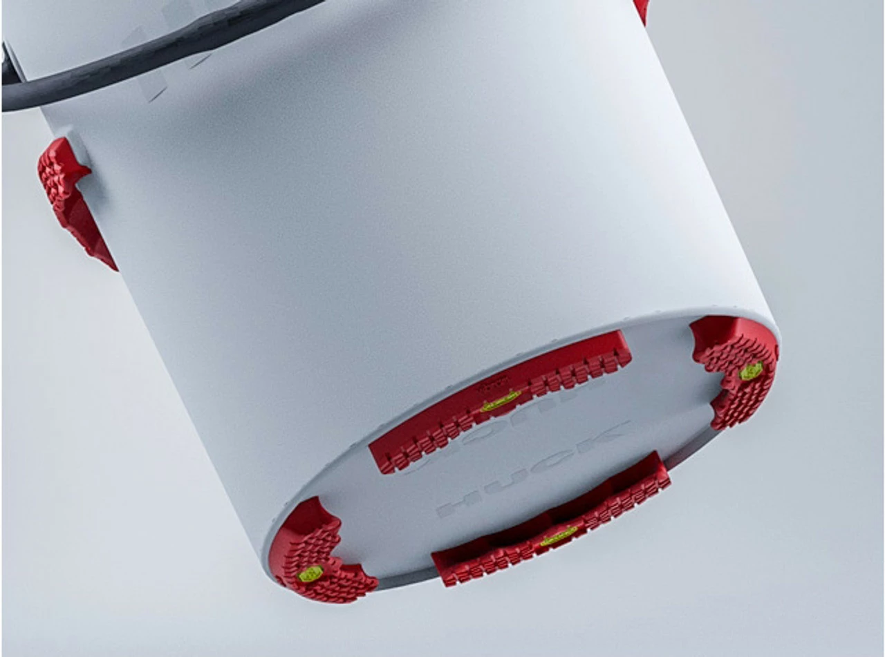 The HUCK Performance Bucket has been called a 5-gallon bucket on steroids. Huck took the endlessly useful old-fashioned bucket and improved everything about it. These buckets are made of SpryTech, an incredibly strong and durable blend of performance polymers. The sidewalls are thick, yet flexible in cold weather, and tough enough to survive heavy impacts. At 1/8” thick, the walls of the HUCK are twice as thick as the walls of an everyday 5-gallon bucket. The handle bulkheads and plugs on a HUCK are six times thicker than on an ordinary disposable bucket. Grippin’ Feet and side handles use Vibram technology to deliver a non-skid grip and ensures a HUCK Bucket won’t skid on deck or slip from your hands.