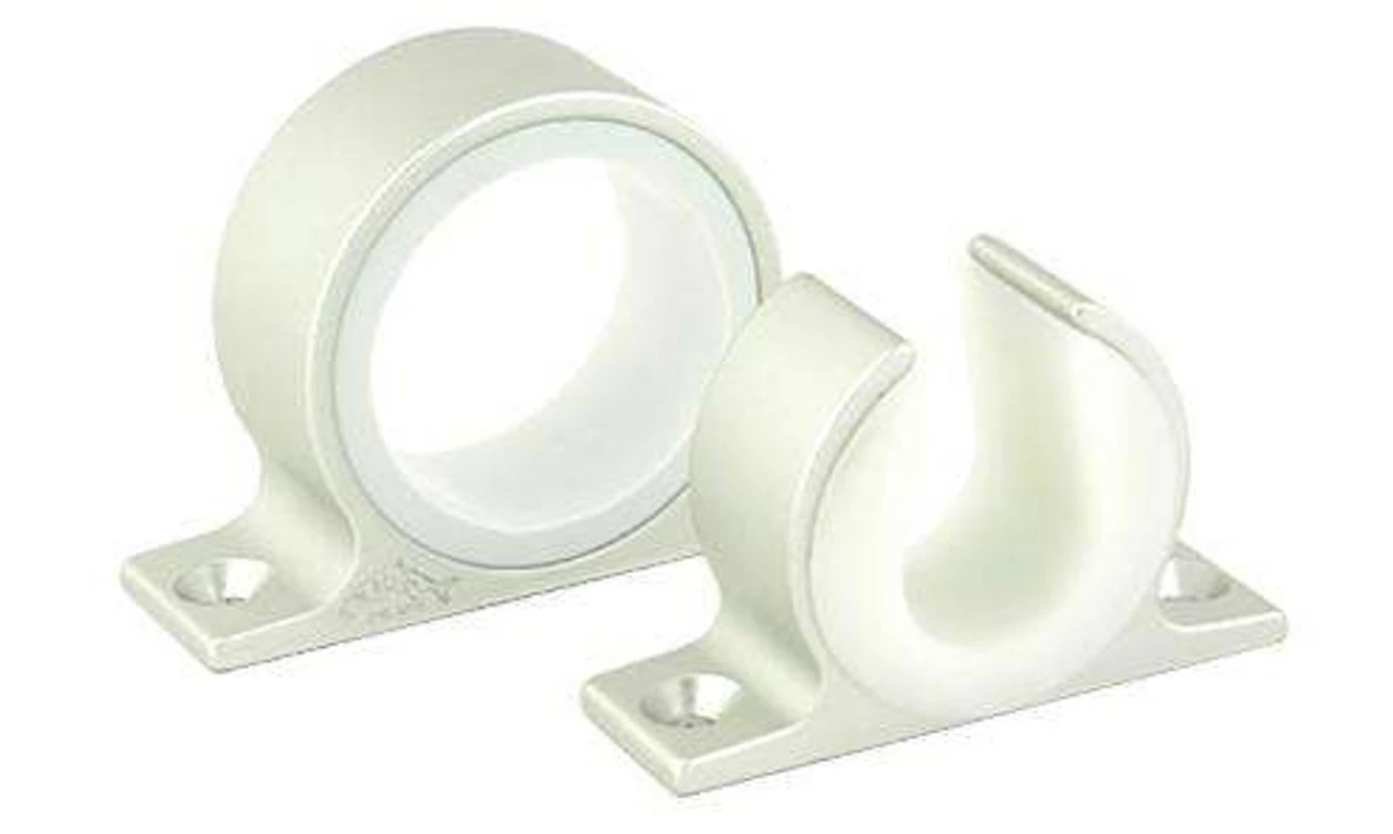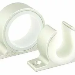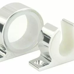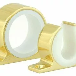 Simple and efficient rod storage. Constructed of Marine Grade Anodized Aluminum with a variety of Anodized Finishes. Rod Butt is inserted into Closed End of set. Vinyl insert protects the Rod Butt. Tip of rod is placed into Locking End of set and Nylon Locking Ring is rotated to lock it in. Will support the heaviest of rods. Can be mounted Horizontally, Vertically or Overhead. Available in Satin Silver, Bright Silver and Bright Gold.