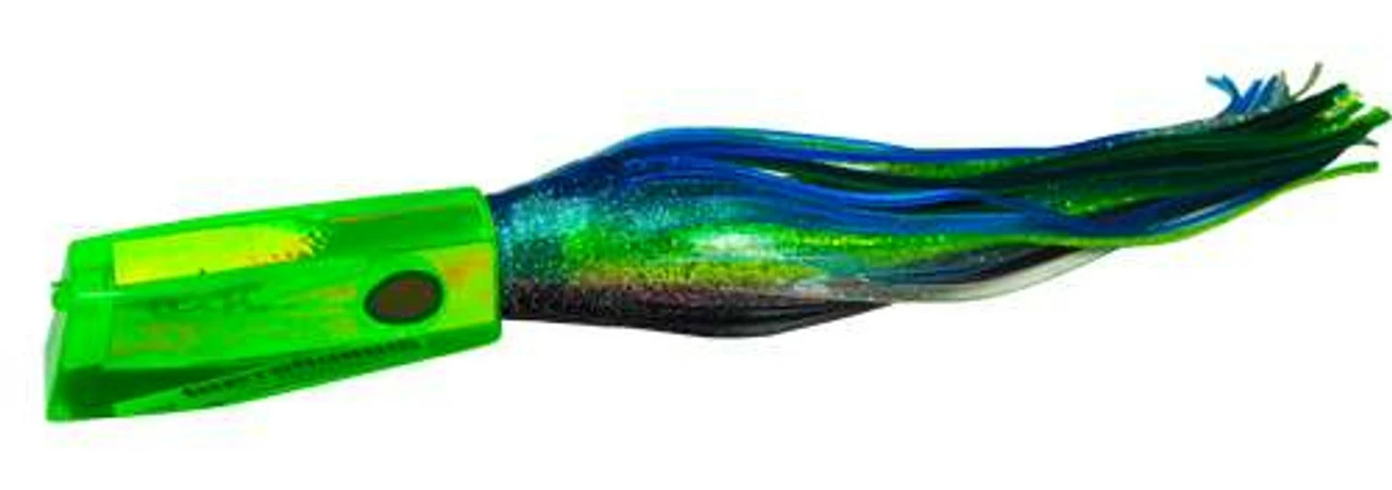 The Medium Tomahawk G-Series Illumanatti Lure swims realistically to the surface only to disappear to depths well below any bubble trails or prop wash. As it climbs back up to the surface it leaves plumes of “smoke” in its back. At the surface this lure will send fans of spray upward resuming in its sub surface course in which it pops to the surface every 6 seconds depending on your trolling speed. Under the water the head of the Tomahawk lure is engulfed by massive bubble resulting in magnification of color and flash. The Blue fly lure features a swimming action. This lure also features a specialized construction with an ultra clear, ballistic stabilized urethane resin making them very tough.