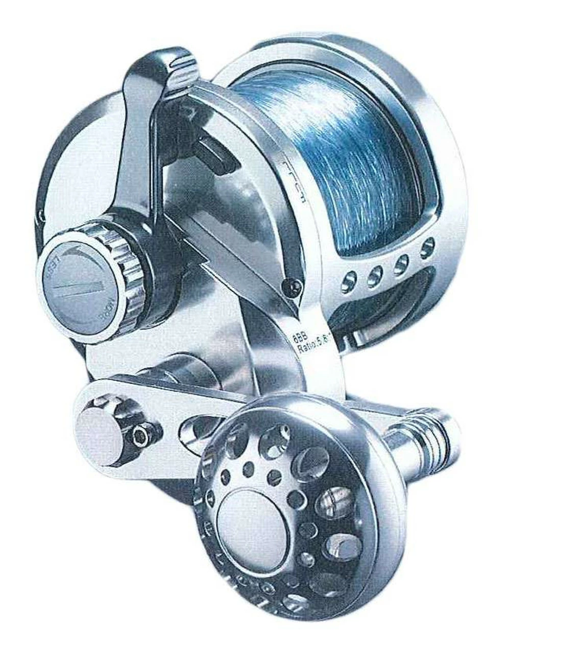 The Maxel Oceanmax Specialty Lever Drag Reels are custom designed for live and dead bait trolling, kite fishing, or drift bait techniques where high speed retrieves, effortless low inertia dropbacks and ultra-smooth light line drags are needed. The Maxel Ocean Max Specialty reels are ideal for smoker kings, sailfish, striped and white marlin fishing. The precision graduated drags are designed for use with monofilament lines and have positive stop pin Strike and Full drag maximums targeted for lines of 15 to 25 pound test lines. The click detent drag Preset won?t drift while fishing or fighting once it is set and the reel can easily match drag range to line test. The carbon fiber drag delivers a wide range, smooth performance curve even when wet. The MAxel Oceanmax Specialty Reels are precision machined from rigid, one piece tempered aluminum billets with cold-forged aluminum spools to stand up to monofilament stretch. The high speed, 5.8:1 gear ratio assures fast line recovery through high precision, heat treated stainless steel gears. Six super German made , shielded stainless steel ball bearings are strategically located for the best of smoothness and power transfer. All stainless steel spool click mechanisms will stand up to the longest runoffs.