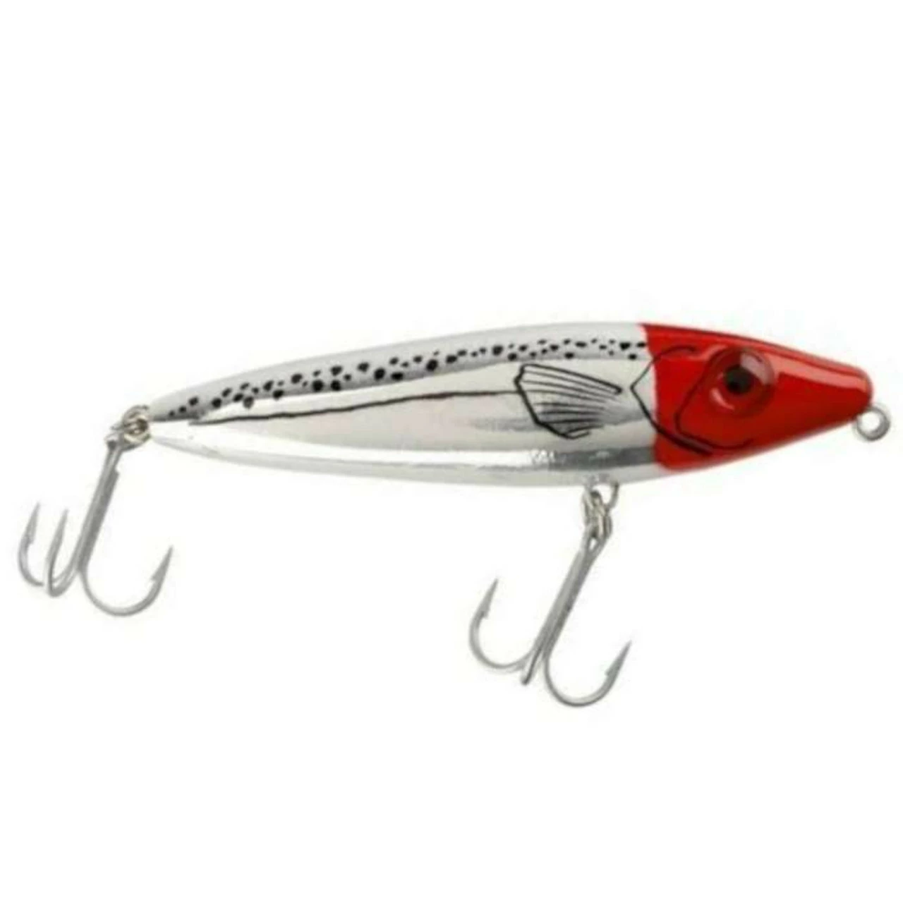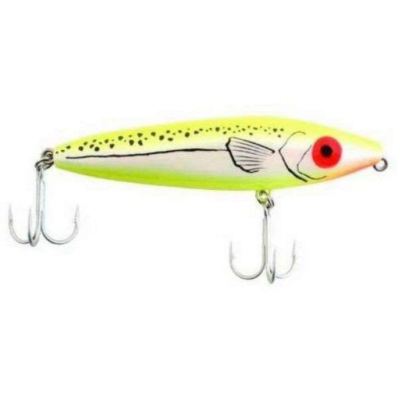 The MirrOlure She Dog lure is molded from “space age” plastic and features twin “sonic fish calling” rattles. Each rattle emits a high frequency sound which enrages game fish int monstrous strikes. The high buoyancy of this lure allows for walk-the-dog action. Made for both saltwater and freshwater gamefish.