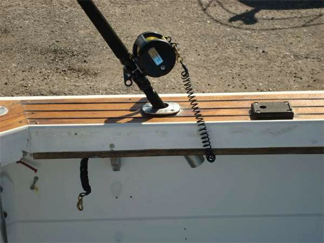 The Rod-On was created as a safety feature for the fishermen, not just the rod! How many times have you tripped over a safety line while fighting a big fish even after you have cleared the cockpit of the other rods! The Rod-On! will hide up underneath the gunwale and then stretch out to hook up to your rod when needed. It will stretch from 5 inches to 5 feet and has been tested to over 450lbs.