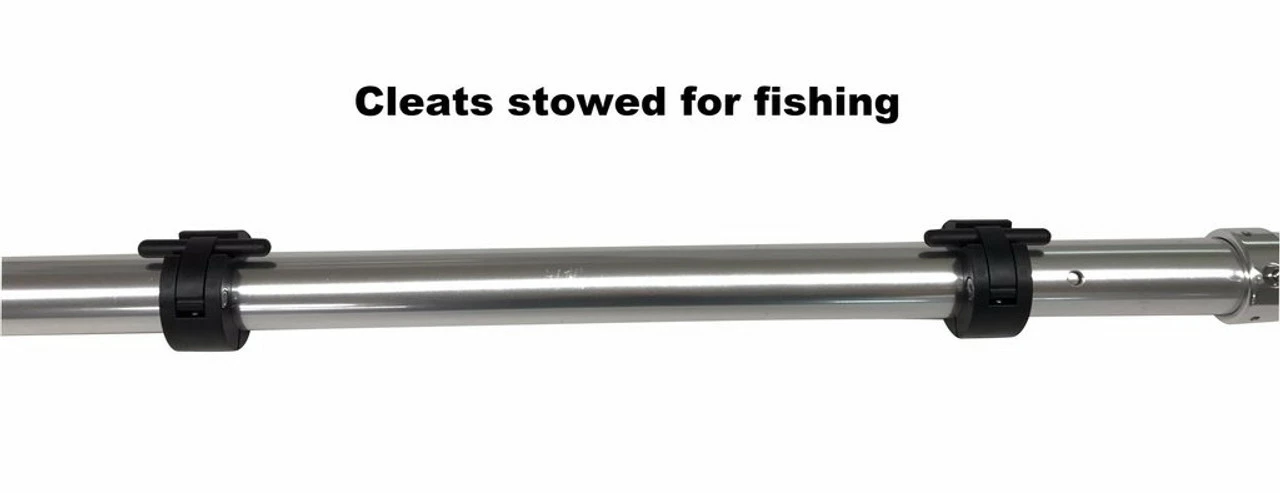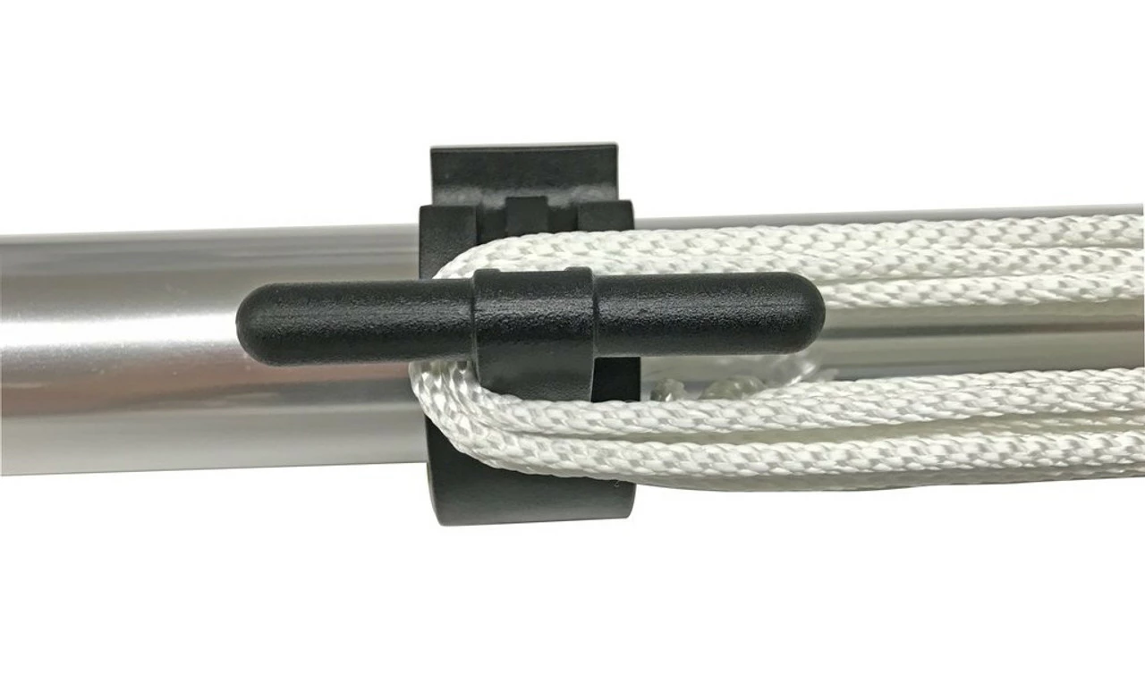 The Rupp Folding Halyard Line Retainer Set provides anglers with a simple and easy way of storing your halyard lines while telescoping outriggers are rigged and in the retracted position. These one-of-a-kind line retainers easily clamp onto any 1-1/2″ diameter outrigger pole, and feature a hinged line cleat that snaps into both open and closed positions. When the outrigger is retracted, the cleats are popped into the open position where the excess rigging line can be easily wrapped around the cleats to keep lines neat and orderly. When it’s time to fish, the cleats are snapped into the closed position, allowing the line cleats to be stowed and out of the way while the outrigger is extended and the halyard line is in use. Constructed from a rugged black nylon and stainless steel fasteners, these line retainers are durable enough to withstand extended exposure to the elements and serve you for many seasons out on the water.