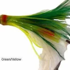 Our Sportfish Feather Chain features 5 feather lures rigged on 200lb test mono. This chain is always an inshore and offshore favorite by anglers everywhere. Albacore, Tuna, Mahi, Wahoo and other Pelagics cannot resist the action of these feathers. All of our trolling chains come with a free lure bag included.