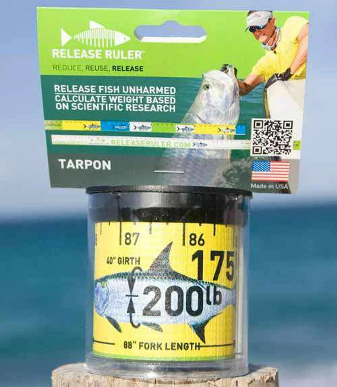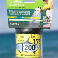 The Tarpon Release Ruler makes estimating tarpon weight very easy. The ruler is 2in x 90in and is made from a durable waterproof PVC coated vinyl and easily stowed in the convenient carrying case. With new regulations prohibiting taking tarpon out of the water, this ruler is the ideal tool to weigh your tarpon quickly and easily. Simply lay the ruler across the tip of snout and identify the fork in tail measurement. That measurement will provide and estimated weight range. If you want to get the weight within a 3-5% probability, simply measure the dorsal girth. Utilizing the modified Babcock 1936 formula(Length x Girth(2)/800= weight and then adding 13% to the overall calculation, you can identify your Tarpon weight. This ruler is a must have for the Tarpon enthusiast. Keep it as a personal log for your biggest catch.