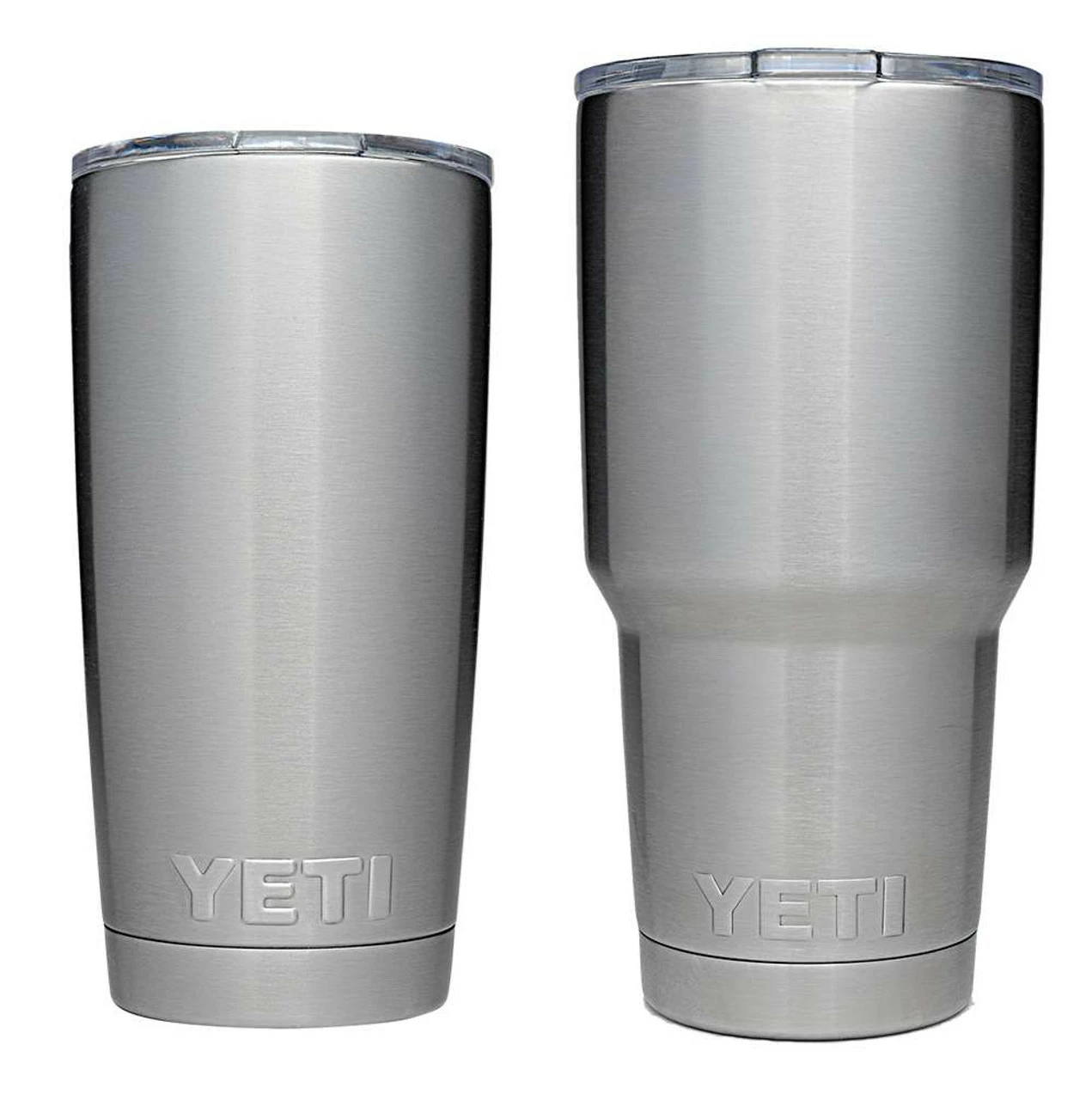 The YETI Rambler Tumblers are made with kitchen-grade stainless steel and double-wall vacuum insulated and the 20oz and 30z tumblers come with a lid. These tumblers keeps ice 2 times longer than a plastic tumbler and are designed for maximum ice retention. These tumblers work for hot beverages as well. This YETI Rambler Tumblers are BPA free and features a No Sweat design.